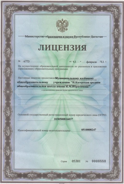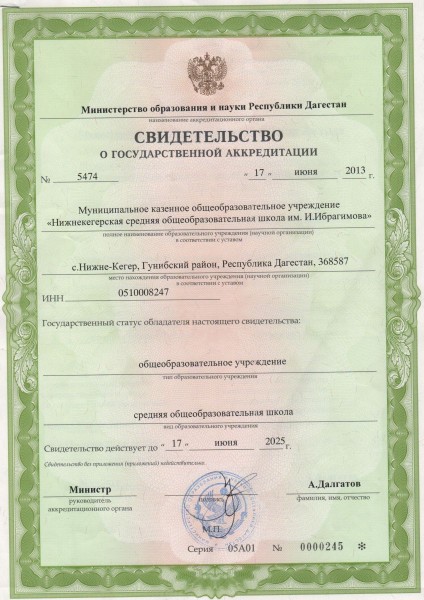 Полное наименование образовательной организации* Муниципальное казенное общеобразовательное учреждение "Н.Кегерская средняя общеобразовательная школа имени. И.М. Ибрагимова"