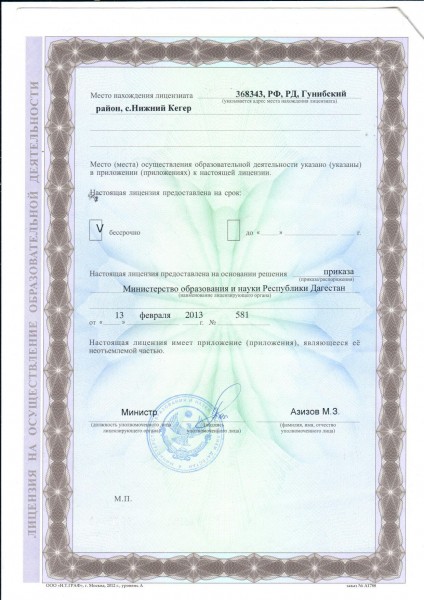 Адрес местонахождения образовательной организации* 368342, Дагестан Респ, Гунибский район, с.Нижний Кегер